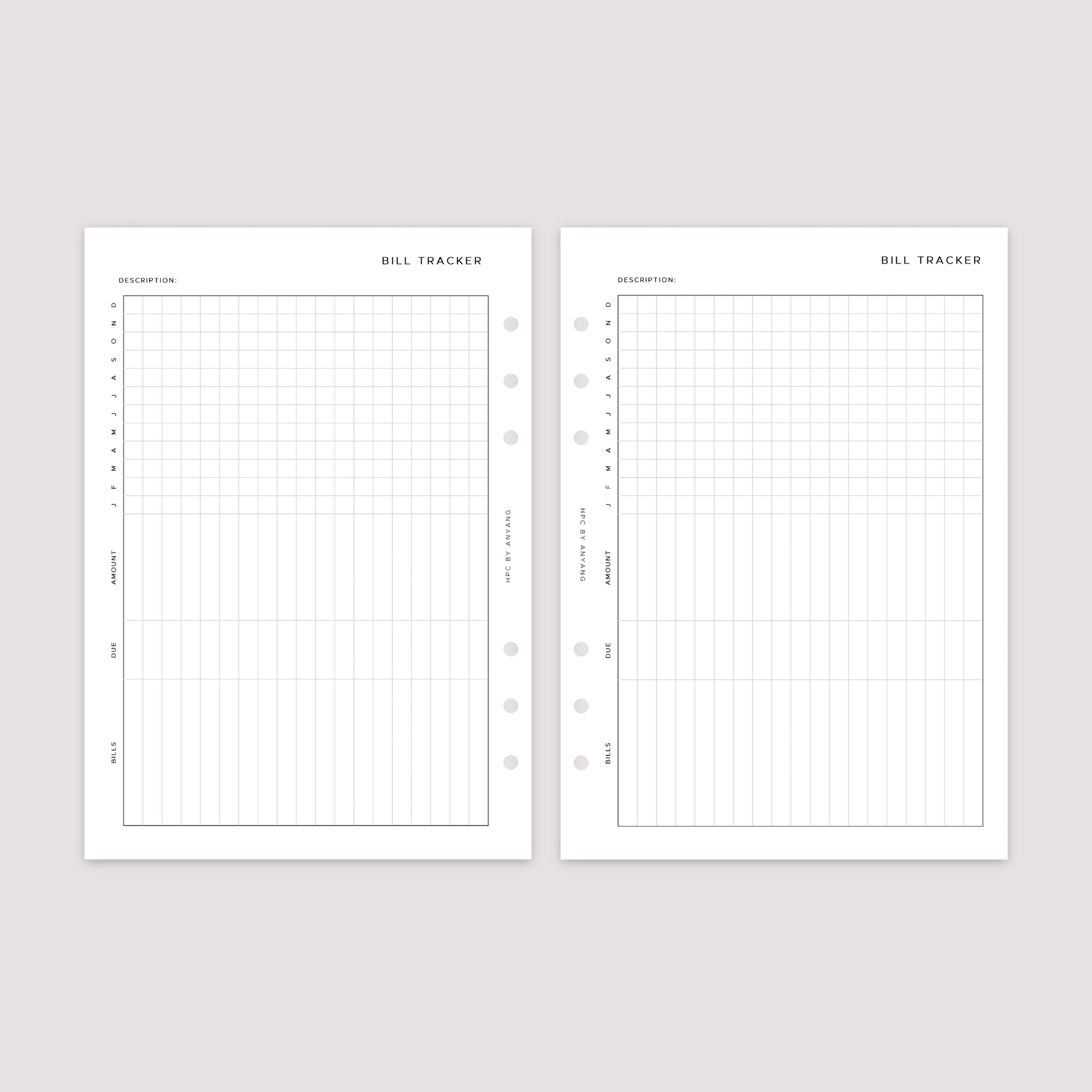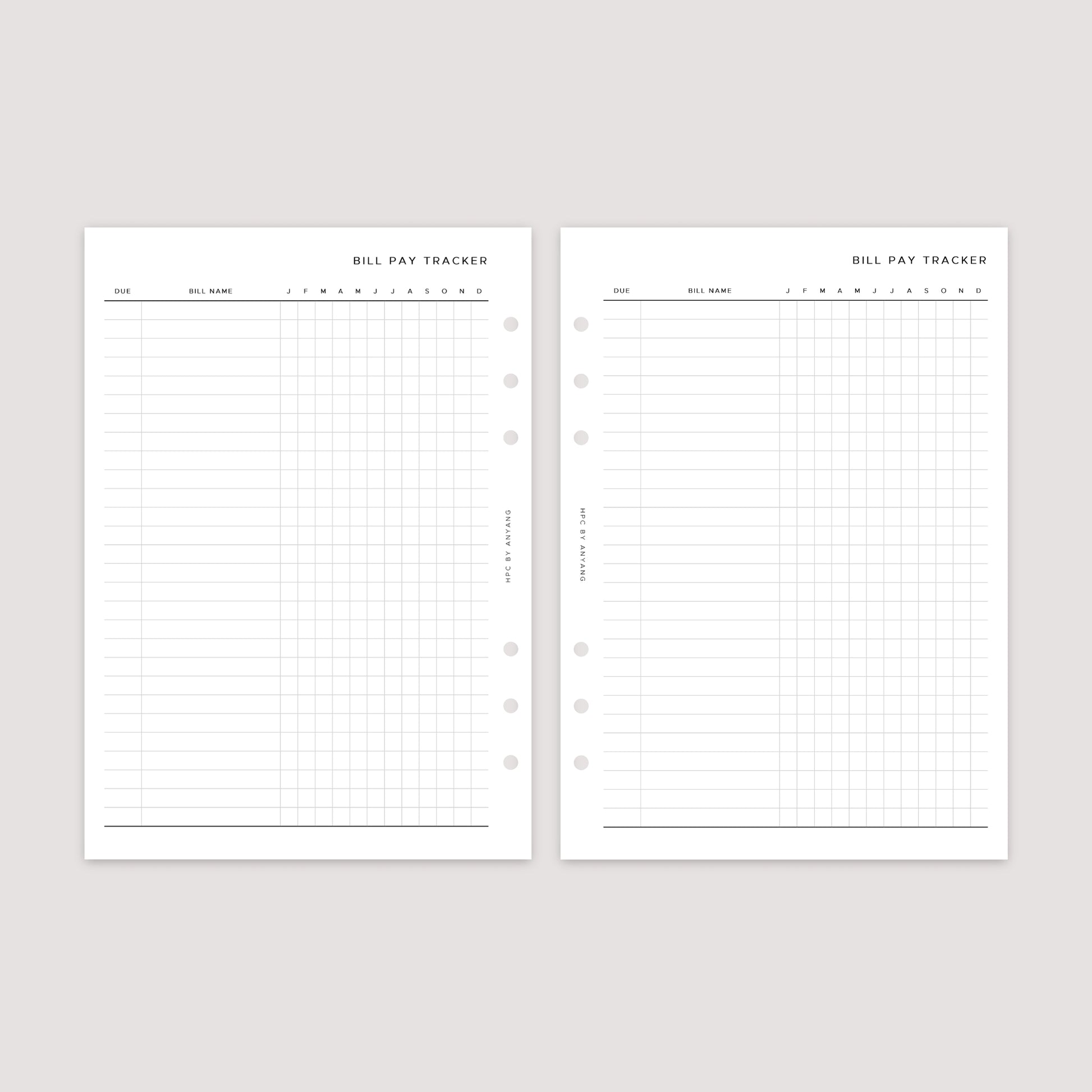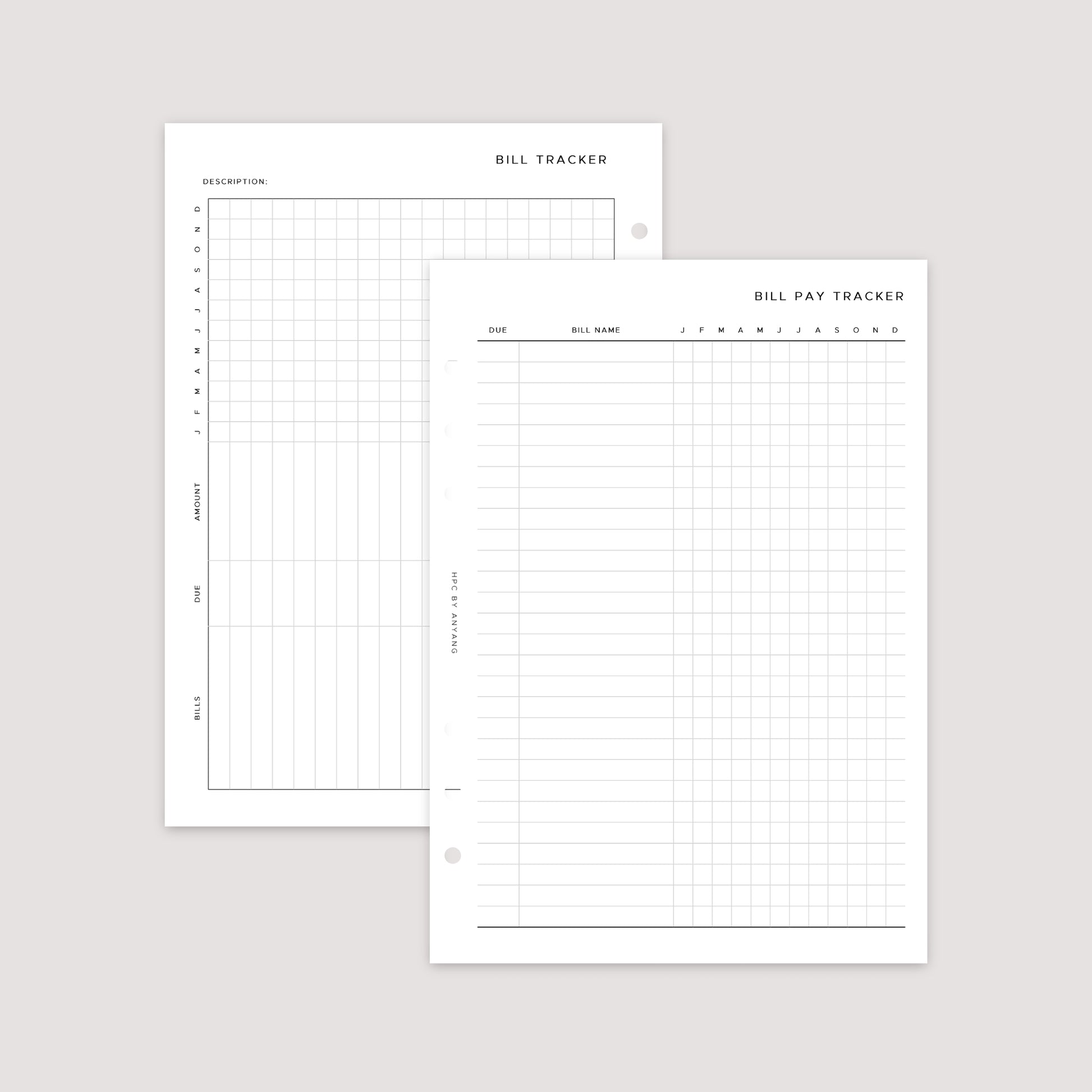 Bill Tracker – Planner Inserts – Vertical and Horizontal Layout