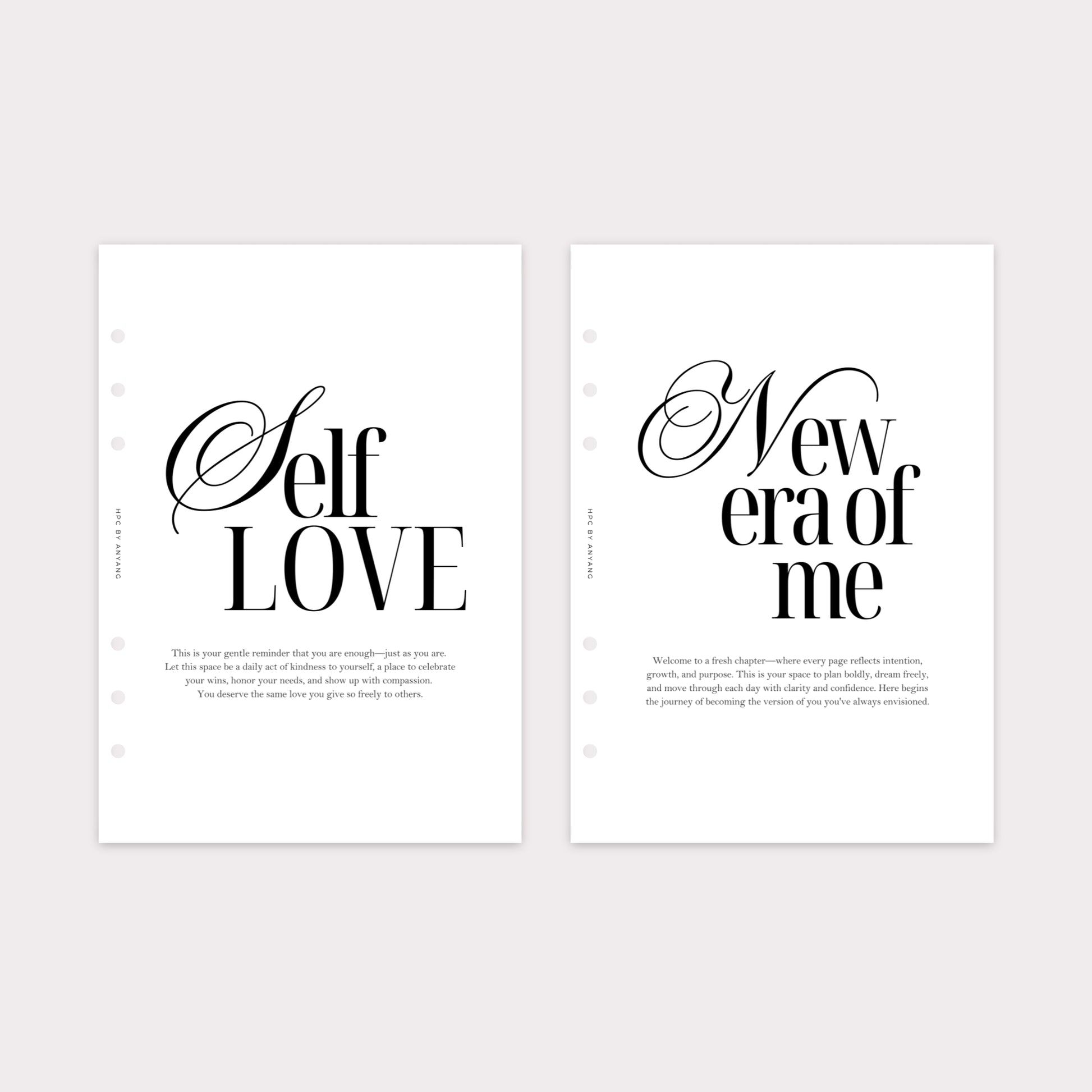 A powerful pair to anchor your planner with intention, growth, and grace. This dashboard bundle includes Self Love and The New Era of Me designs. Created to inspire daily reflection, healing, and transformation.