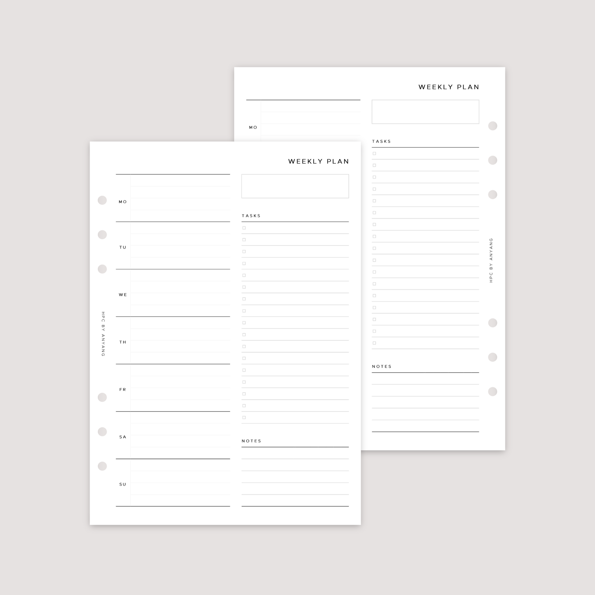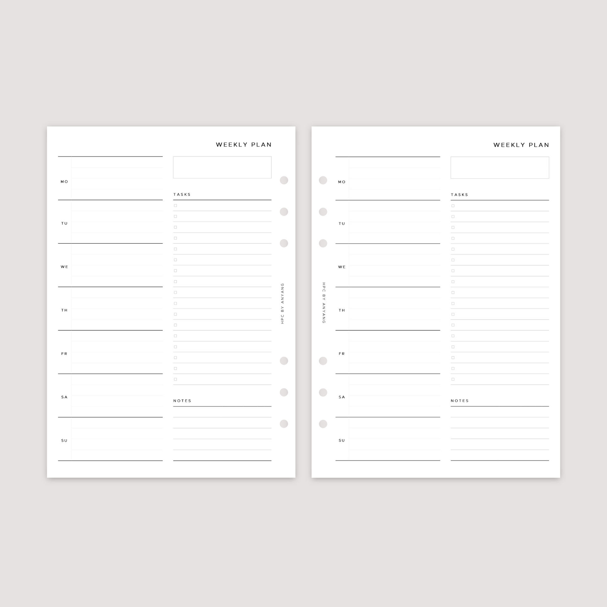 Keep it minimal and flexible with our Undated Week on 1 Page Inserts. Perfect for light planners, this simple layout gives you a full weekly overview at a glance—great for scheduling, journaling, or adding notes.